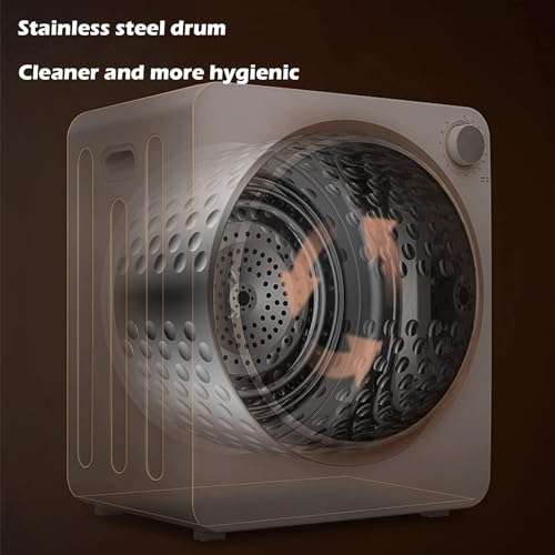 Dieser Mini-Wäschetrockner von YEHOZZ bietet schnelle Trocknung durch PTC-Keramik-Warmluft und natürliche Lufttrocknung. Die Warmlufttrocknung sorgt für flauschige und angenehm zu tragende Kleidung, während die Kaltlufttrocknung ideal für empfindliche Kleidungsstücke ist. Der Innenzylinder aus Edelstahl ist langlebig und leicht zu reinigen. Der Trockner stoppt automatisch, wenn die Abdeckung geöffnet wird, was zusätzliche Sicherheit bietet. Ein Abluftfilter entfernt effektiv Flusen und Verunreinigungen, während der Lufteinlassfilter die Luft reinigt und aufheizt, um Kleidung vor äußeren Verschmutzungen zu schützen.Dieser kompakte Wäschetrockner ist ideal für kleine Wohnungen oder Schlafsäle, wo Platz begrenzt ist. Seine kompakte Größe erlaubt es, ihn leicht zu verstauen, wenn er nicht in Gebrauch ist. Dank der Schnell- und Kaltlufttrocknungsoptionen können Sie Ihre Kleidung schonend und effizient trocknen. Der Trockner ist besonders geeignet für Studenten oder Menschen, die in kleinen Räumen leben, da er wenig Platz beansprucht und dennoch eine Trocknungskapazität von 2,5 kg bietet. Der energiesparende Betrieb macht ihn zu einer umweltfreundlichen Wahl für alle, die auf ihren Energieverbrauch achten möchten. Mit seiner einfachen Bedienung und Wartung ist dieser Mini-Wäschetrockner eine praktische Lösung für den Alltag.